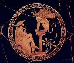 Edipo, el de los pies inflamados, el del alma enferma, va a ser víctima de filicidio y se salva, cumple el parricidio matando a Layo y el incesto con su madre Yocasta. Pero llegará la luz de Apolo, cuando arrepentido se ciega. La ceguera es el símbolo de la sabiduría y la visión interior, son ciegos Homero el poeta fundador y Tiresias el consejero de los dioses. En El origen de la tragedia, Nietzsche refiere el inicio del relato trágico como dionisíaco, entregado al salvajismo y al placer del deseo desenfrenado. Pero la culminación es apolínea, deriva del dios de la luz de la razón, que se impondrá al héroe trágico. Sin embargo esta victoria no es definitiva, somos dionisíacos y apolíneos a la vez, porque la humanidad consiste en una dialéctica constante entre el deseo y la razón, entre Dionisos y Apolo que alternativamente invaden nuestro ser.