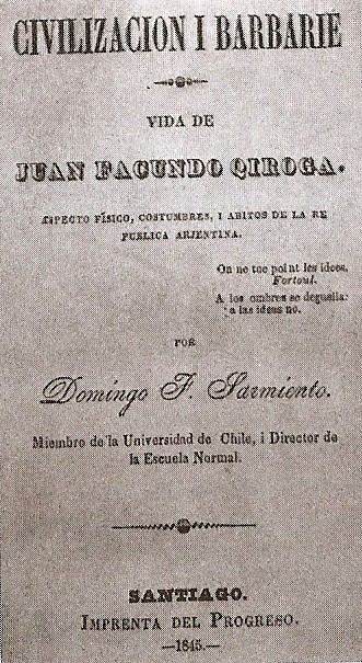 Sarmiento, dueño de una pluma magistral, escribe Facundo o civilización y barbarie en las Pampas argentinas, sobre la vida del riojano Facundo Quiroga (federal), personaje que encarna la barbarie asociada al caudillo Juan Manuel de Rosas.