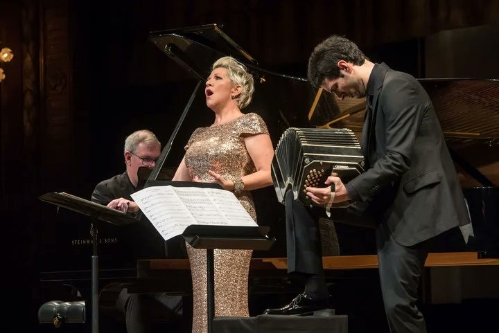 Un párrafo a parte merece la actuación del pianista Craig Terry. Su desempeño fue fundamental como preciso y eficaz interlocutor musical de la cantante. Demostró además de un gran talento una visible discreción. El bandonionista Lautaro Greco se destacó en sus breves pasajes y logró destacarse junto a Terry y DiDonato de manera notable en Los pájaros perdidos de Astor Piazzolla donde el piano, la voz y el bandoneón lograron una conjunción memorable.Into the light fue en síntesis, una bocanada de aire fresco y saludable, un ejercicio esperanzador y un ejemplo de la actitud que debemos asumir para afrontar las dificultades de la vida siempre con música y por la música.
