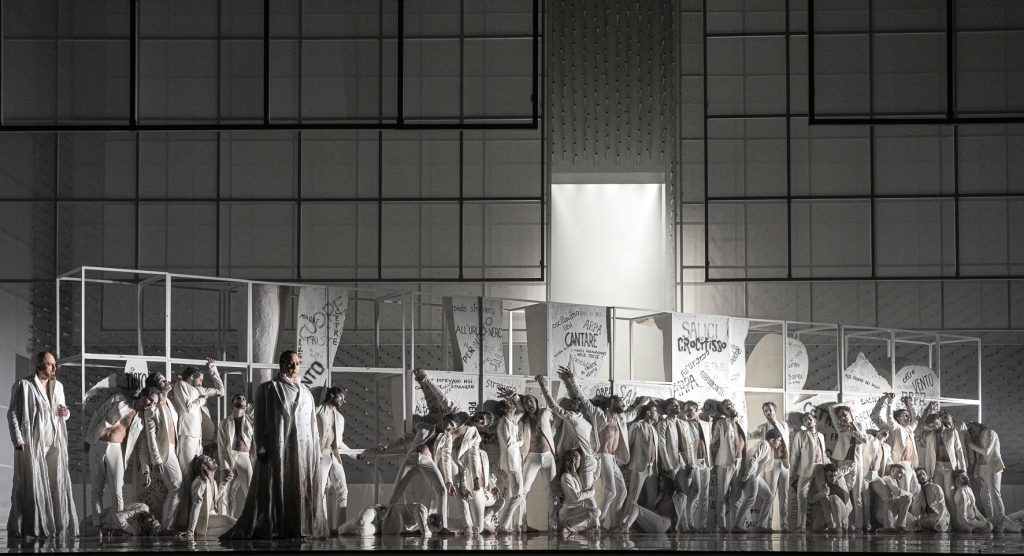 “La paradoja del momento actual -escribió Marc Augé en el prefacio de Hacia una antropología de los mundos contemporáneos– quiere que toda ausencia de sentido pida sentido, así como la uniformización llama a la diferencia”. Las palabras escritas en 1994 por el antropólogo francés resonaron en mi memoria durante la función de Nabucco del 2 de junio mientras me distraía la puesta errante de Stefano Poda, donde todo fue una enorme confusión, supongo que deliberada.