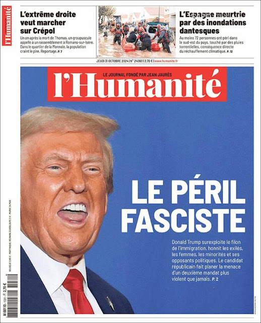 2. Muchos –diría que casi todos– los periodistas y sus medios apoyaron a Kamala Harris, pero atacando a Donald Trump, de quien dijeron que es fascista, populista, nazi, antidemocrático, monstruo, criminal… Les subo estas portadas, anteriores a la elección, como botones de muestra: